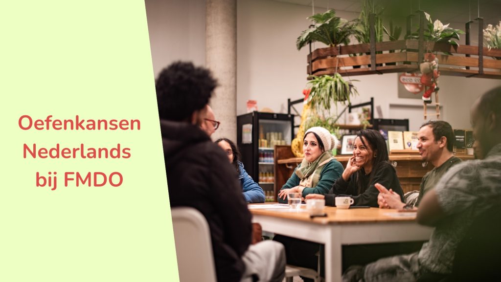 FMDO* organiseert veel oefenkansen Nederlands. Tijdens praattafels, ontmoetingen en projecten kunnen anderstaligen hun Nederlands oefenen. Ze praten met elkaar en leren zo nieuwe woorden en zinnen.